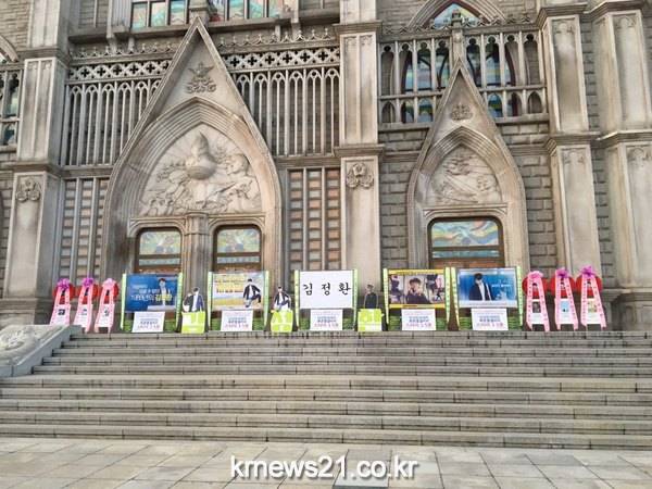 5일 서울 경희대 평화의전당에서 열린 응답하라 1988 콘서트에 배우 류준열을 응원하기 위해 디시인사이드 류준열 팬클럽이 스타미 쌀화환 3.5톤을 보내왔다.