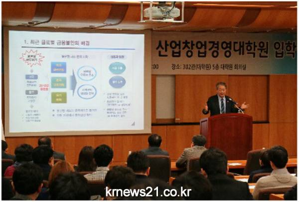 김창봉 대학원장은 입학식사에서 “우리는 지금 창조경제 시대에 살고 있다”며 “창조경제 시대에는 기능을 강조하고 전통적 경영기법을 넘어 기존 산업에 창의적 아이디어를 접목시켜 새로운 시장을 창조하는 노력이 필요하다”고 신입생과 재학생들에게 당부했다.