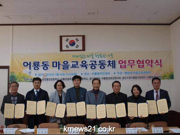 광산구 어룡동 주민과 사회단체 그리고 학교가 마을교육공동체 사업 협약을 14일 맺었다.