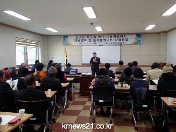 광주시농업기술센터(소장 정성훈)는 15일 센터 2층 중 회의실에서 “강소농 육성을 위한 슈퍼약도라지 품목별 연구회 창립총회”를 개최하고 재배 기본교육을 실시했다.