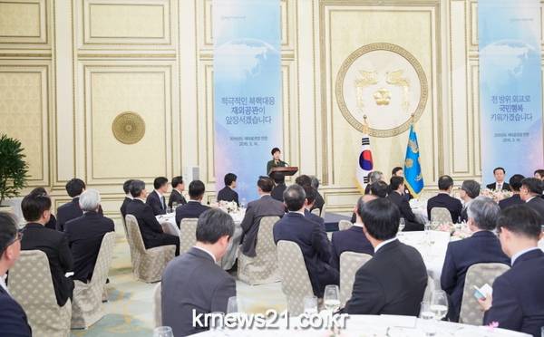 이어 박근혜 대통령은 우리 경제의 재도약을 위해 공관의 역할이 더욱 확대되어야 한다고 강조하고, 수출 기업이나 해외진출 기업 등 우리 기업들을 지원하는 일에 최선을 다하면서 젊은이들이 해외로 진출할 일자리를 알아내고 홍보하는 일에도 힘써 달라고 주문했다.