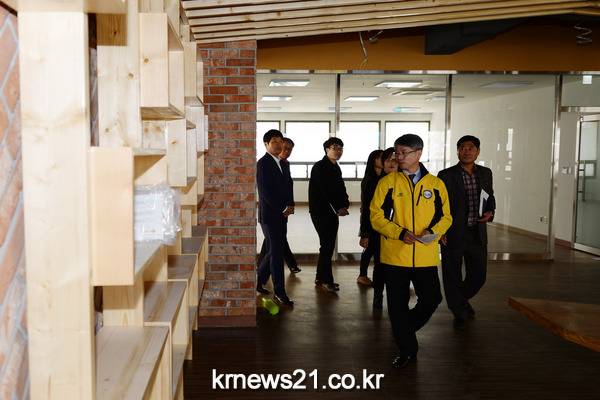 현장 방문은 16일에도 이어졌다. 어룡동에 있는 광산구민회관 리모델링 현장을 찾은 것. 이곳은 현재 일부를 광산생활문화센터로 바꾸는 공사를 진행하고 있다.