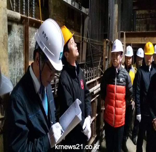 이날 마지막으로 찾은 옥길지구 아파트 건설공사 현장에서는 작업 인부들의 안전사고 예방에 만전을 기할 것을 당부했다.