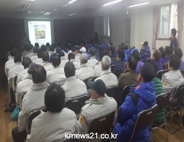부천오정경찰서(서장 박동수)에서는 지난 18일(금) 14:00 대한노인회 부천시 오정구지회 3층 강당을 찾아 대한노인회 회원 120명을 대상으로 힁단보도 수신호 및 안전지도 방법 등 시민안전지킴이 교육을 실시했다."고 밝혔다.