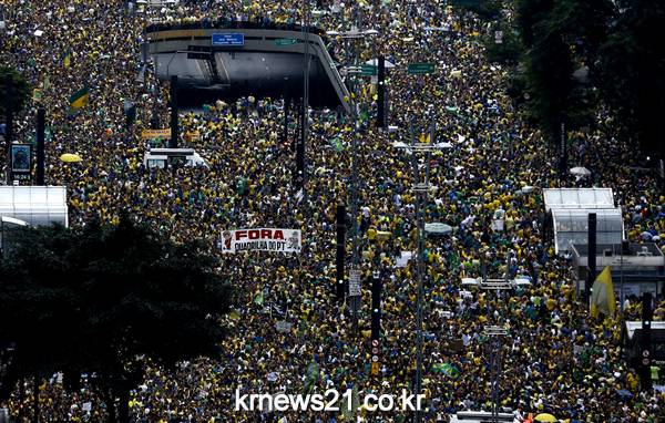 ▲ ⓒMiguel Schincariol / AFP지난 3월 12일 상파올로에서 호세프 대통령의 탄핵을 요구하는 시위대들
