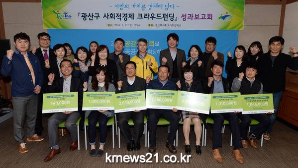 광주 광산구(구청장 민형배)가 추진한 사회적경제 크라우드펀딩이 성황리에 마무리 됐다. 기금 모금에 뛰어든 8개 사회적경제 기업 중 6개 기업이 목표한 투자금을 확보한 것.