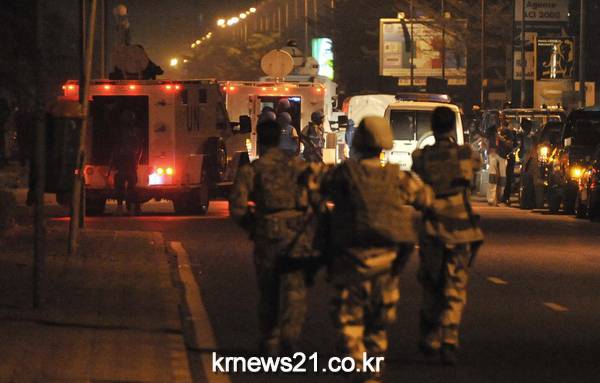 ▲ ⓒHABIBOU KOUYATE / AFP말리에서 유럽연합 군사훈련 임무단(EUTM)이 묵고 있는 호텔에 무장괴한이 습격했다.