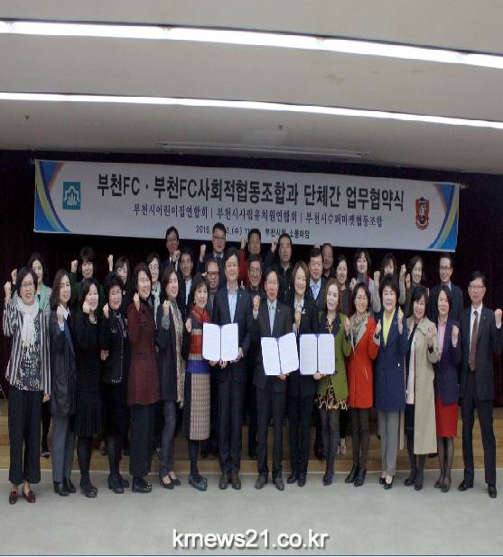 부천FC1995와 부천FC 사회적협동조합이 부천시어린이집연합회, 부천시사립유치원연합회, 부천시수퍼마켓협동조합과 상호발전을 위한 업무협약을 체결했다."고 밝혔다.
