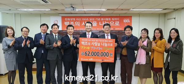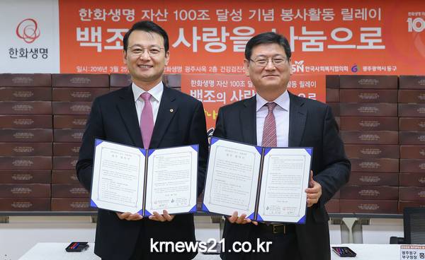 한편 한화생명 호남지역본부는 2013년부터 동구 관내 지역아동센터 후원, 노인대상 무료급식활동, 한부모 건강검진, 드림아동 돌잔치, 저소득층 김치지원, 명절 제수용품 후원 등 모두 1억7천만 원 상당을 지역사회에 환원하는 등 사회공헌활동의 모범을 보이고 있다.