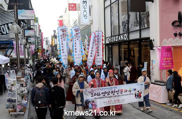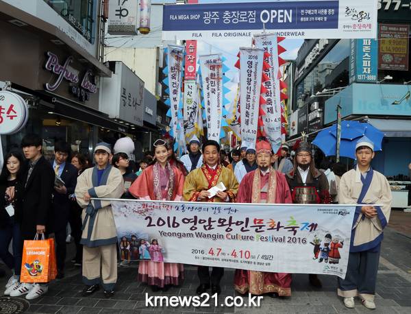 전남 영암군은 지난 3월 26일(토) 광주 충장로에서 일본에 문자를 전파했던 백제시대 대학자인 왕인박사와 그 일행과 함께 대형 퍼레이드를 펼쳐 시민들의 이목을 집중시켰다.