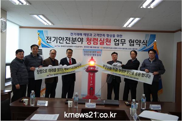 한국전기안전공사 부천김포지사(지사장 이정규)는 지난 25일(금) 회의실에서 한국전기공사협회 부천협의회, 김포협의회 회장, 전기안전분야 관계자 등 20여 명이 참석한 가운데 전기재회 예방과 고객만족 향상을 위한 청렴실천 한마당 행사를 개최했다."고 밝혔다.