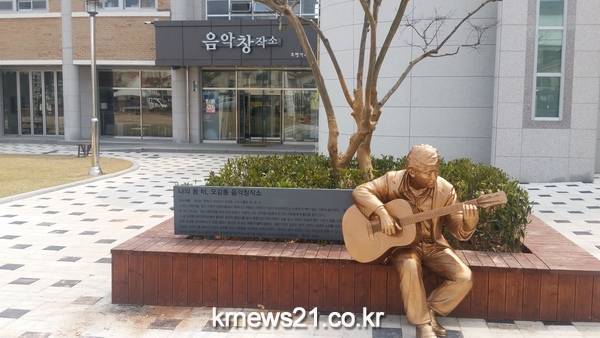 강진군은 강진오감통 음악창작소와 먹거리장터 사이 배롱나무 그늘아래 기타치는 조형물을 설치했다.