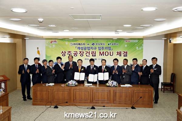 이날 체결식에는 김관용 경북도지사와 이정백 상주시장, ㈜DSE 박재덕대표이사가 참석했다. ㈜DSE는 2015년 연간매출액이 595억원 정도의 동종업계 선두기업으로써, 앞으로 건설될 상주공장이 정상 가동되는 2018년에는 45명의 고용 창출이 예상된다.