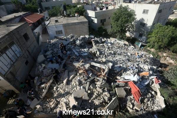 서안 지구에 있는 한 팔레스타인 사람의 주택이 이스라엘 군에 의해 파된 모습.