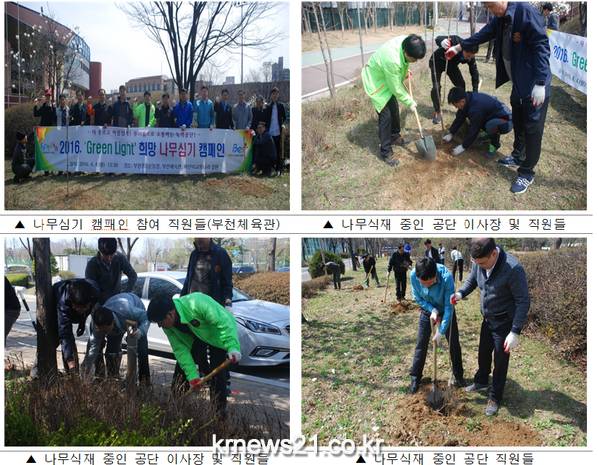 부천시설관리공단(이사장 임명호)은 제70회 식목일을 맞이하여 지난 4일 푸른부천, 푸른 공단 만들기를 위한『 ‘Green Light’ 희망 나무심기 캠패인』을 전개하여 나무심기 행사를 진행 했다."고 밝혔다.