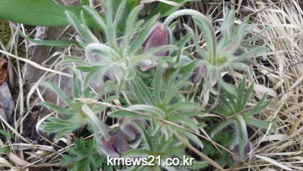 미나리아재비과에 속하는 다년생 초본식물. 건조한 양지에서 자라며, 우리나라의 거의 전지역에서 난다. 꽃은 4~5월에 적자색으로 피는데, 여러 개의 꽃대 끝에 꽃이 하나씩 달린다. 줄기와 잎, 꽃은 흰색 잔털이 덮여 있다.