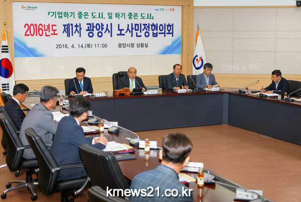 광양시는 광양시 노사민정협의회 및 실무위원회를 정례적으로 개최하여 일자리창출과 산업평화 정착에 기여하기로 하였다」고 밝혔다.