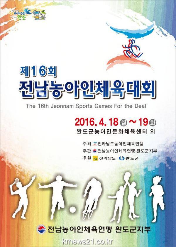 전남 농아인의 축제인『제16회 전남농아인체육대회』가 오는 4월 18일~19일까지 이틀간 완도군 일원에서 개최된다.