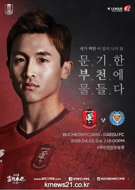 부천FC1995(이하 부천FC)가 오는 23일 오후 4시 부천종합운동장에서 2016시즌 K리그 챌린지 6라운드에서 대구FC를 상대로 홈 연승에 도전한다.
