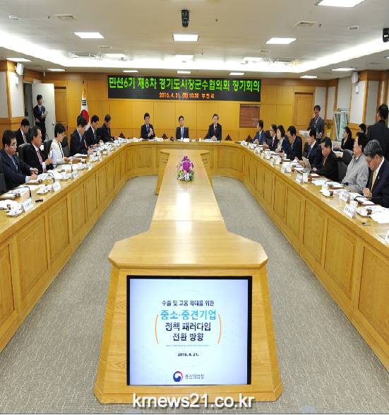특히 이날 회의에 주영섭 중소기업청장이 참석해 수출 및 고용확대를 위한 중소·중견기업 정책 패러다임 전환방향에 대한 설명과 경기도 31개 시 · 군과 중소기업청의 협업을 통해 수출과 일자리 확대를 위한 공동선언을 제안했다.