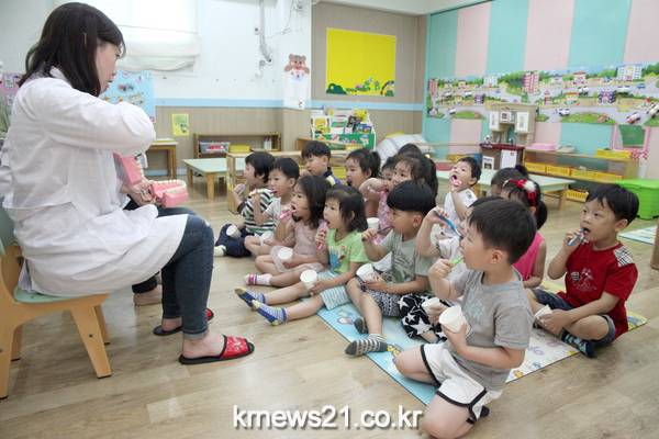 4월부터 진행 중인 ‘꾸러기 튼튼 치아 만들기’ 는 동구보건소와 치위생과 대학이 연계한 프로젝트로 어린이집과 유치원을 직접 방문해 인형극, 올바른 이 닦기 체험, 불소 바르기, 불소용액으로 양치하기 등 충치예방 프로그램을 진행한다.