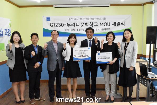 이번 업무 협약을 통해 G1230과 누리다문화학교는 다문화가정 중도입국 청소년들의 학습 지원과 한국사회 적응을 위하여 적극 협력하기로 하였다.