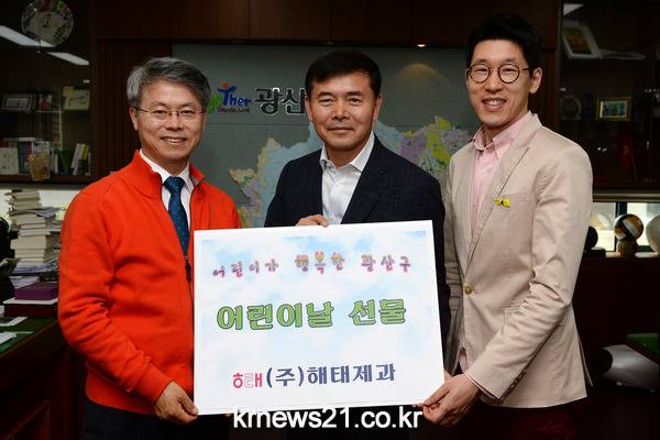 어린이날을 맞아 ㈜해태제과(대표이사 신정훈)가 2일 투게더광산 나눔문화재단에 과자와 아이스크림을 선물했다.