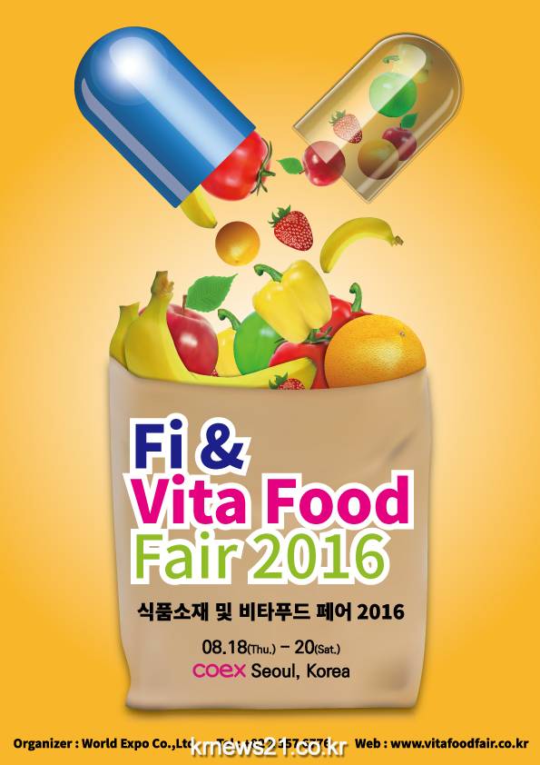 우리 기업에게 비타푸드 시장 관련 정보와 수출관련 플랫폼을 제공하고자 (주)월드전람은 ‘식품소재 & 비타푸드 페어 (Fi & Vita Food Fair 2016)’를 8월 18일부터 20일까지 3일간 서울 코엑스에서 개최한다.