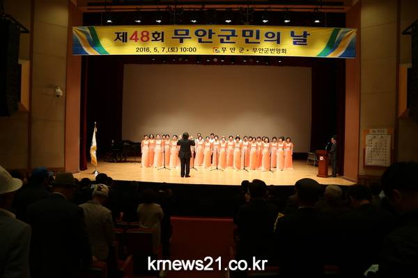무안군(군수 김철주)은 군민화합과 번영을 다짐하는 제48회 군민의 날 행사를 7일 10시에 승달문화예술회관 대공연장에서 기관․사회단체장과 향우 및 군민 500여명이 참석한 가운데 개최했다.