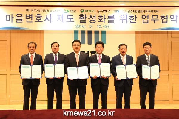 이날 협약에 따라 광주지방변호사회 목포지회는 읍면별로 담당 변호사를 지정하고 분기 1회 이상 직접 방문해 상담하거나 법률교육을 실시하며, 군에서는 마을변호사가 상담이나 교육을 할 수 있도록 장소와 행정편의를 제공하고 법률상담과 교육제도를 적극 홍보하기로 했다.