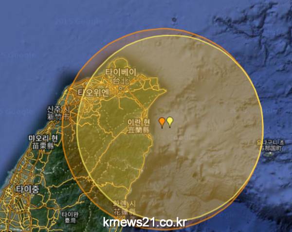 미국지질조사국(USGS)은 진원이 타이페이에서 남동쪽으로 60km 떨어진 지역이며 진원의 깊이는 10km라고 밝혔다.