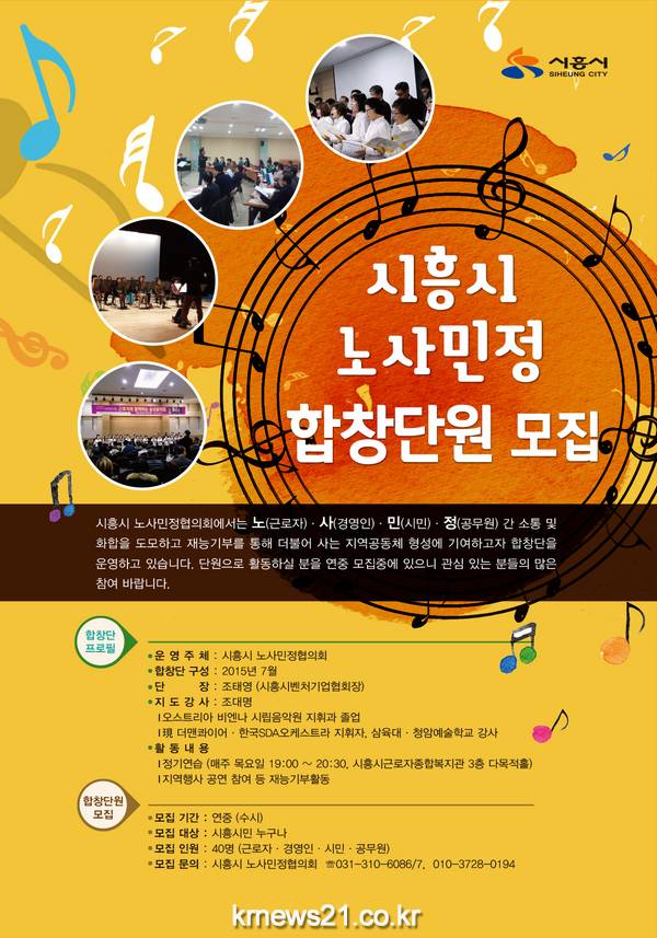 아울러, 노사민정 협의회에서는 합창단의 활성화 및 지역사회 공헌활동 강화를 위해 단원 연중(수시) 모집 홍보 포스터를 제작하여 배포하는 등 더 많은 시민, 더 많은 경영인, 더 많은 근로자들이 참여할 수 있도록 기회의 장을 열어 놓고 있다.