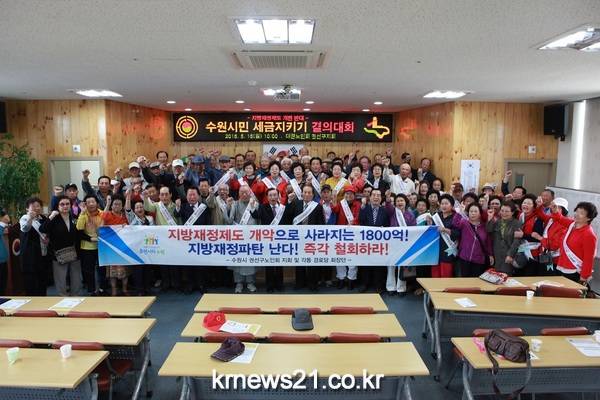 또한 대한노인회수원시권선구지회 임원 및 권선구 관내 경로당 회장 등 180여명도 서호노인복지회관 3층 강당에서 각종 복지정책의 축소가 예상되는 지방재정제도 개편을 반대하는 결의대회를 가졌다.