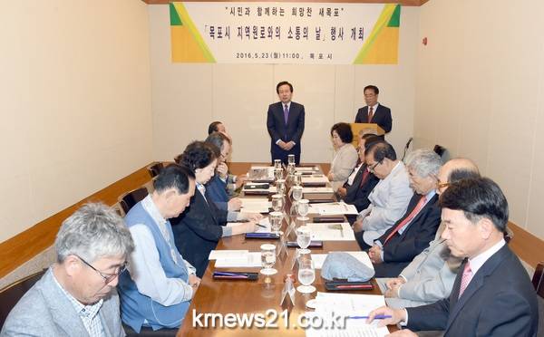 시는 23일 신안비치호텔에서 정시채 전 농림부 장관, 배광언 전 전남도의회의장, 홍순영 대한노인회 목포시지회장, 최태옥 목포의료원장 등 경제·교육·문화·종교·예술·시민운동 등 각 분야에서 신망이 두터운 지역 원로 들이 참석한 가운데 ‘목포시 원로와의 소통의 날’을 개최했다.