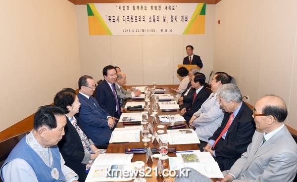 박홍률 시장은 신항크루즈 전용 부두 건설, 삼학도 국제카페리 부두 건설, 입암산 생태숲 조성사업, 남해안철도(목포~보성) 고속화사업, 호남고속철도(목포~송정) 건설, 이난영 탄생 100주년 기념행사 등 주요시정 현안을 설명하고 원로들의 의견을 수렴했다.