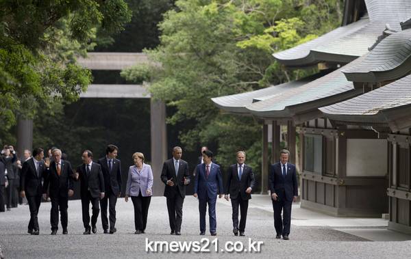G7 정상회담을 위해 일본에 모인 정상들이 26일 미에현 이세 신궁을 방문했다.