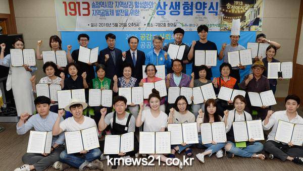 이날 오후 5시 구청 상황실에서 가진 협약식에는 1913송정역시장 안의 건물주 12명(총 16명)과 청년상인 17명(총 21명) 그리고 김영환 광주․전남지방중소기업청장이 참석했다.