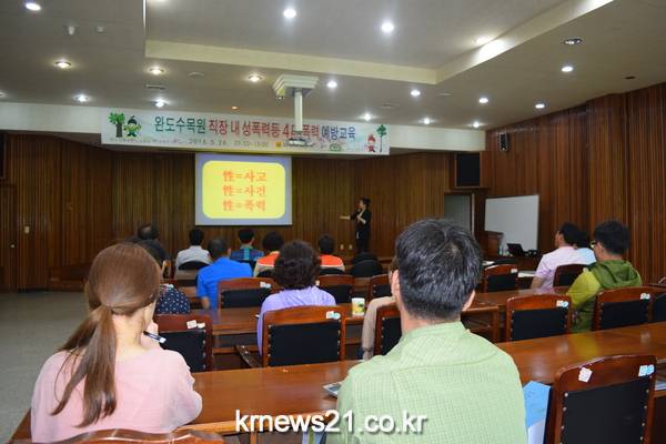 전라남도산림자원연구소 완도수목원은 건전하고 즐거운 직장 분위기 조성을 위한 직장 내 성폭력ㆍ 성희롱ㆍ성매매ㆍ가정폭력 예방 통합교육을 지난 26일 실시했다.