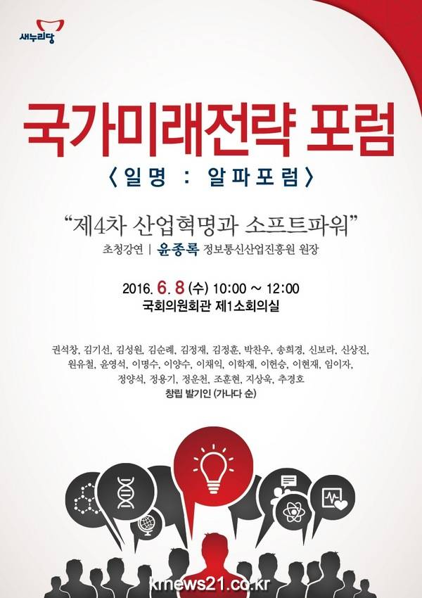 원유철 의원은 오는 6월 8일(수) 오전 10시 국회의원회관 제1소회의실에서 국가미래전략포럼(일명 : 알파포럼) 창립총회 및 강연회를 개최할 예정이다.