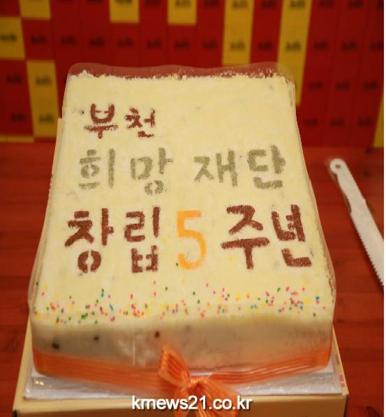 부천희망재단(이사장 정인조)은 창립 5주년을 맞이하여 재단사무실(중동1144-4번지 현해탑프라자 4층)에서 작은 기념식을 진행했다."고 밝혔다.