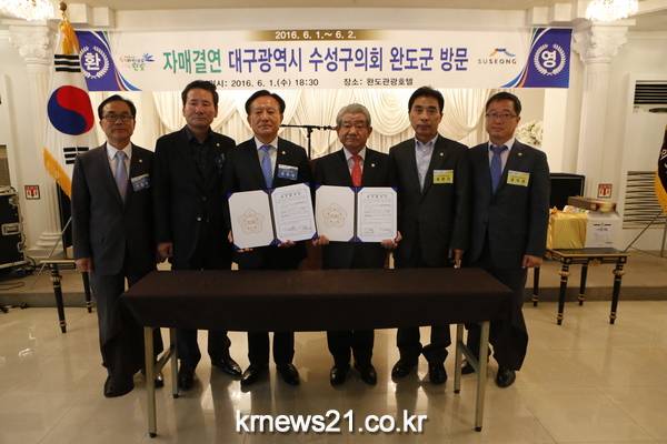 완도군 의회와 수성구 의회는 지난 1992년 8월 6일 자매 결연을 맺은 이후 24년 동안 꾸준한 교류활동을 전개해 오고 있다.