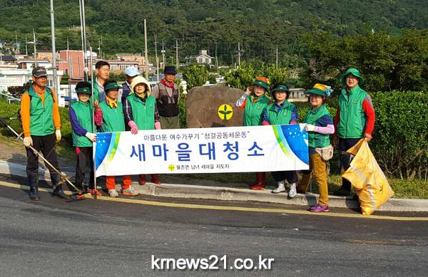 여수시 율촌면 새마을남녀지도자협의회(회장 이기전, 이인순)는 아름다운 여수 가꾸기 시민운동의 일환으로 관내 공한지와 버스승강장을 대상으로 대대적인 환경정화 활동을 펼쳤다.