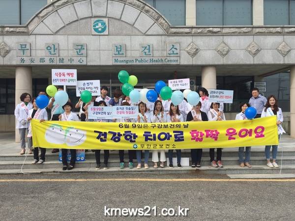 무안군(군수 김철주)은 지난 9일 제71회 구강보건의 날을 맞아 보건관계자 40여명이 참여한 가운데 구강건강의 중요성을 알리고 이에 대한 관심을 유도하기 위해 구강보건 홍보캠페인과 이동구강상담소를 운영하는 등 관련 행사를 개최했다고 밝혔다.