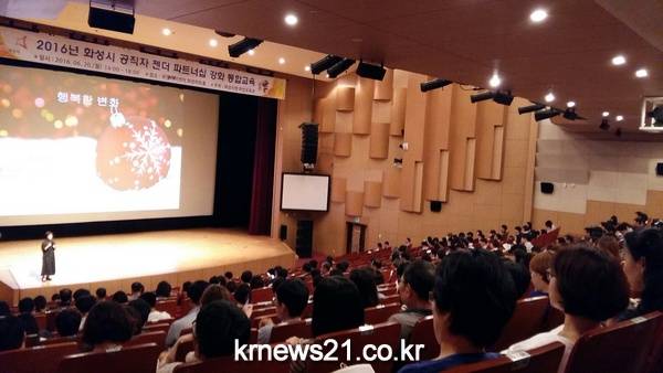 화성시는 지난 20일과 21일 양일에 걸쳐 유앤아이 센터 화성아트홀과 시청 대강당에서 직원 1,000여 명을 대상으로 2016년 상반기 공직자 대상 젠더 파트너 십 강화 통합교육을 실시했다.
