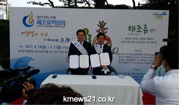 완도군(군수 신우철)은 지난 17일 송파구 잠실야구장에서 고려대학교와 2017완도국제해조류박람회 성공개최 및 상호이해와 협력을 통한 공동우호 증진을 위한 업무협약을 체결했다.