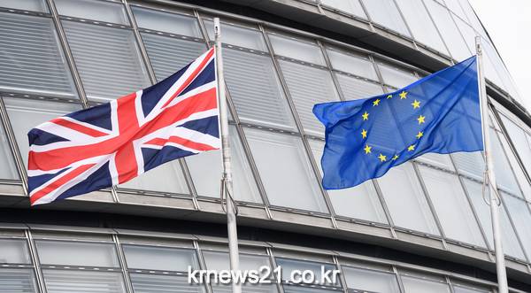 ▲ ⓒLEON NEAL / AFP센트럴 런던에 있는 유렵연합기와 영국 국기