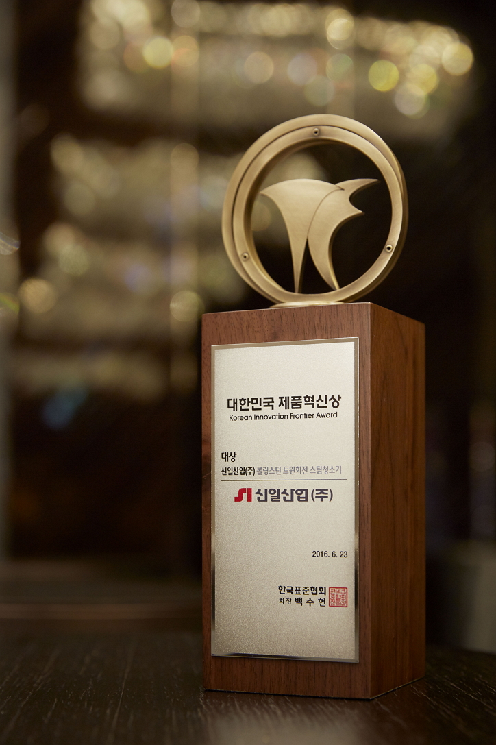 대한민국 종합가전 기업 신일산업이 23일(목), JW 메리어트 동대문 스퀘어 서울에서 열린 2016 대한민국 혁신대상 시상식에서 트윈회전 스팀청소기 ‘롤링스턴’으로 제품 혁신 대상을 수상했다. 한국표준협회가 주관하는 대한민국 혁신대상은 신기술, 제품, 서비스, 경영 분야에서 혁신을 통해 성과를 이룬 기업이나 공공기관을 선정하여 시상하는 제도로 신일산업은 선풍기에 이어 스팀청소기까지 3년 연속 수상하게 되었다.