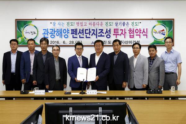 지난 28일 진도군청에서 이동진 진도군수, ㈜산이건설 최동천 대표이사 등이 참석한 가운데 300억원 규모의 투자협약을 체결했다.