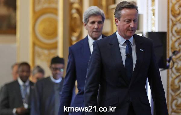 ▲ ⓒDan Kitwood / POOL / AFP데이비드 캐머런 영국 총리(앞)와 존 케리 미 국무장관(뒤)