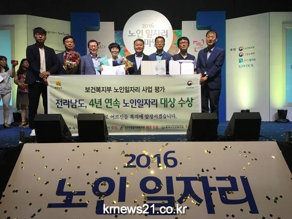 전라남도는 30일 오전 경기도 고양 킨텍스에서 개최된 2015년 노인일자리 평가대회에서 ‘대상’을 수상, 보건복지부장관 표창을 받았다.